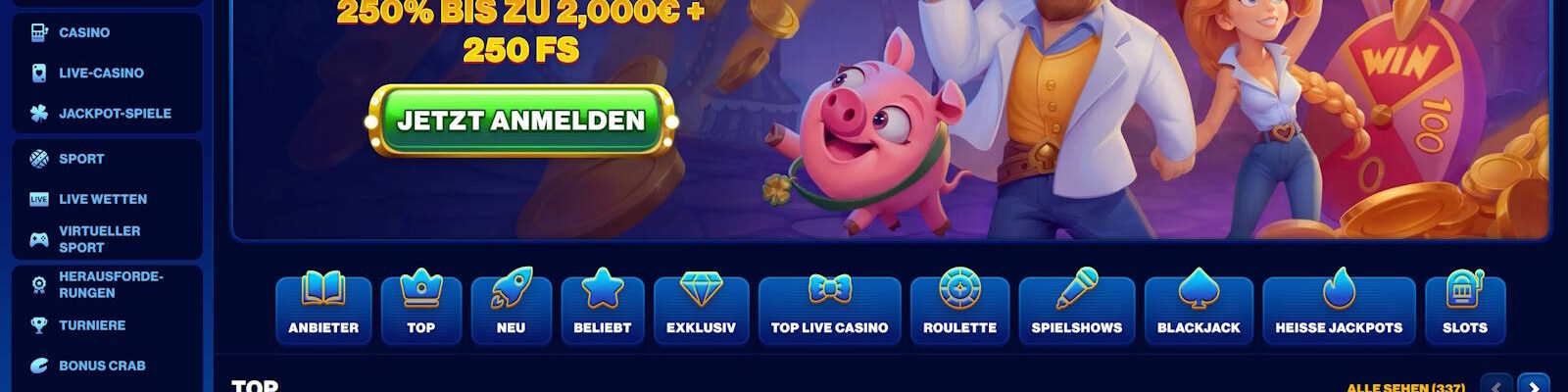 ♣ Bonus bis 2000 € + 250 FS + Bonus Crab