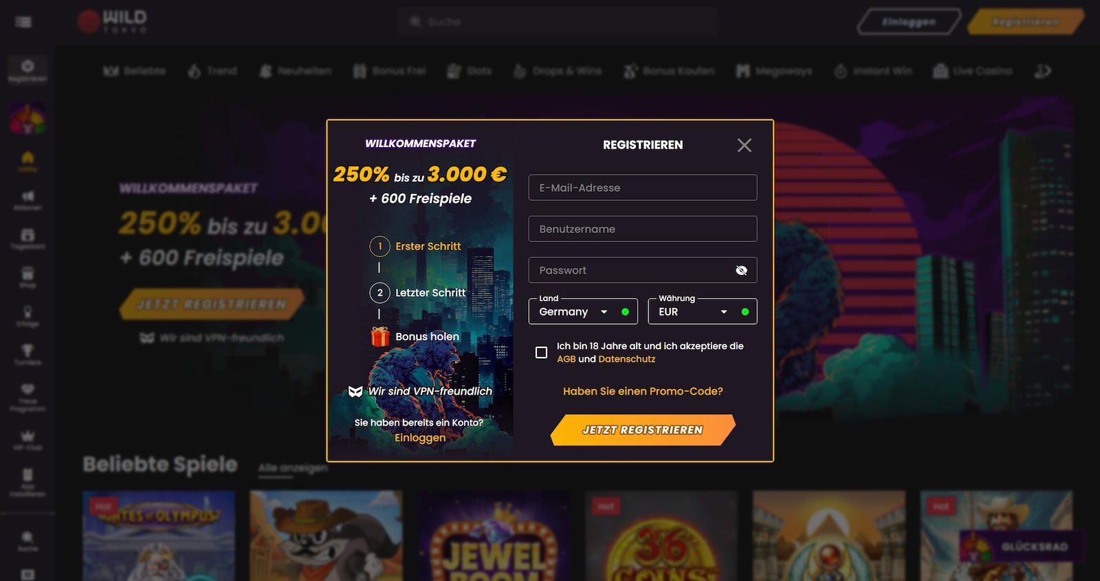 Immer die aktuellsten Spieltitel ohne Einsatzgrenzen bei WildTokyo
